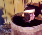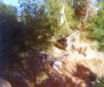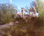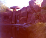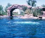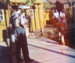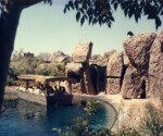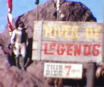 The “River of Legends” river ride was a centerpiece attraction when Legend City first opened. The original ride incorporated a number of defining elements that remained present throughout the entire run of the river ride attraction, such as the Indian attacks and the earthquake. However, after the ride was renamed “Cochise’s Stronghold” in the mid ’60s, most of the scenes became loosely based on actual place names in southeastern Arizona such as the San Simon River, Fort Bowie and Apache Pass. The fact that the San Simon was not navigable and Fort Bowie never had a port seemed minor details at the time. The water for the river ride came from the effluence of the Phoenix Zoo next door to the park. Heaven forbid anyone ever fell into this cauldron of animal waste! Except where otherwise noted, these photos are courtesy of Dick Kraus, who created many of the animated effects.