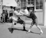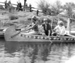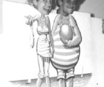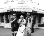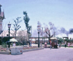 The Coca-Cola Golden Palace Saloon (later called the Red Garter) was a major entertainment venue at Legend City, featuring a rich variety of performers of just about every imaginable kind, most notably the ventriloquism act of future Miss America Vonda Kay Van Dyke. The Copper Tones barber shop quartet was another early act at the Palace, led by West High School senior Rick Mitchell. Meanwhile, Ed and Nanci Keener performed their magic act at Legend City for many months, working the stage along with Sandy Gibbons and Vonda Kay at both the Golden Palace and Lagoon Amphitheater. Many of the black and white images on this page are courtesy of the Keeners, who appear in the photos along with Sandy, his assistant Sandra Dirickson, Vonda Kay and a second barbershop quartet known as the “Devilaires.” Incidentally, Sandra appeared with Sandy on “Dialing For Dollars” on KPHO-TV in the mid ’60s. Here also appears three color photos of the Golden Palace from the archives of Louis Crandall. Let the good times roll.