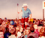 Legends in their own right, Wallace and Ladmo were the hosts of the longest running daily TV kids show in history, an eclectic blend of cartoons, skits, music and general silliness that featured Pat McMahon’s unforgettable characters of Aunt Maud, Captain Super, Marshal Good, Elmer Blisco, Boffo the Clown, and the quintessential spoiled brat, Gerald. The trio’s weekly stage shows at the Lagoon Amphitheater in Legend City were truly inspired exercises in the art of sublime lunacy. This is a collection of early photos of Wal, Lad, Gerald and Maud taken in various locations and situations around the park. Photos courtesy of Johnny Franklin. Also featured here are two color photos of Wal and Lad taken during the Ground Breaking Day festivities, courtesy of Louis Crandall. Also see Video Files.